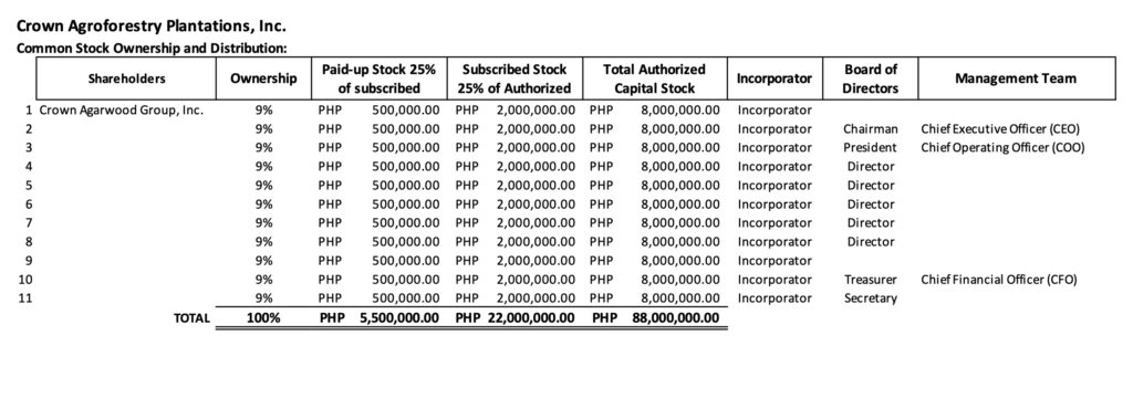 - We are projecting to generate a total capital paid-up of Php 4.5 Million for the company to take-off from more or less Nine (9) stockholders/incorporators with Five Hundred Thousand (Php 500,000.00) investment each.